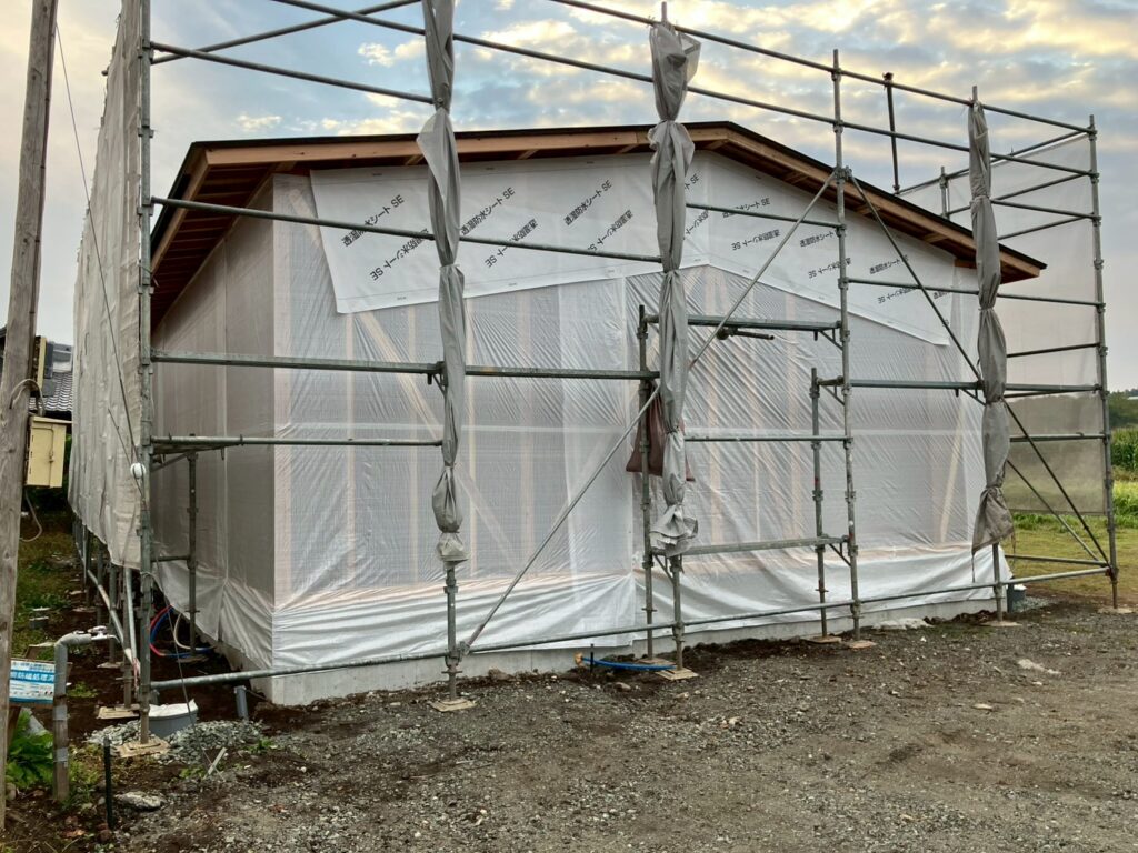 その後、屋根下地を組み、棟木をあげて上棟の完了です🏠