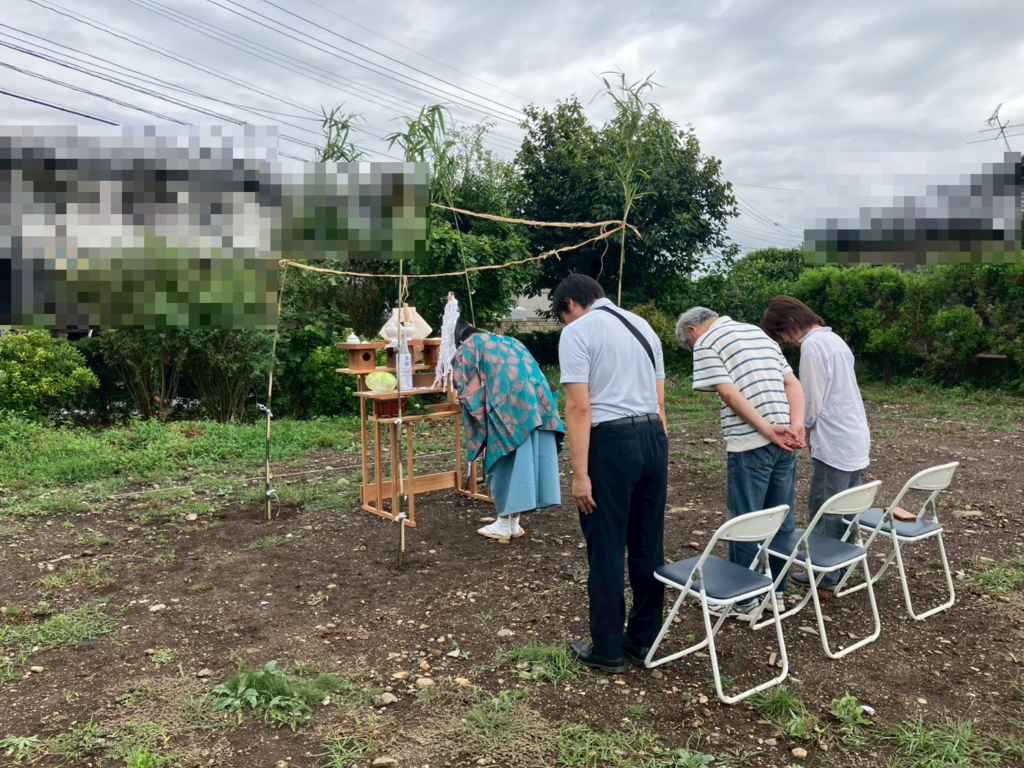 雨の予報が続く中、この日は曇り空で暑さはありましたが、直射日光がない分、晴れの日よりも過ごしやすい中で地鎮祭を執り行うことができました🌤️