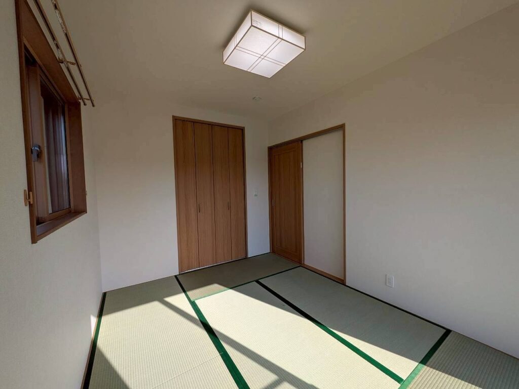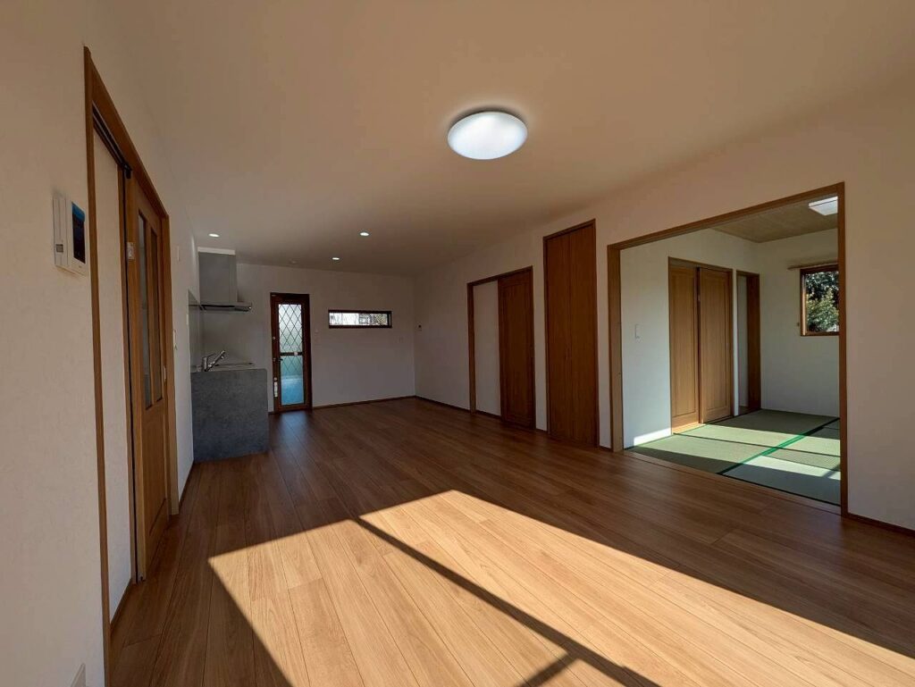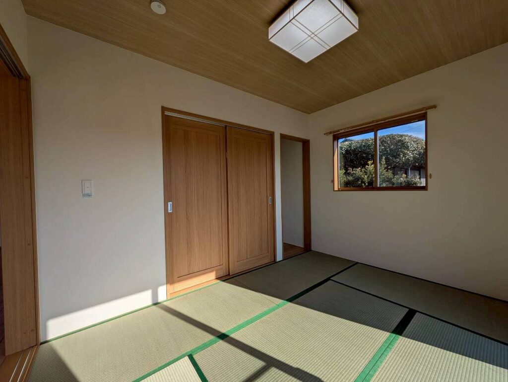 リビングとフラットにつながる、イ草の香り広がる和室。