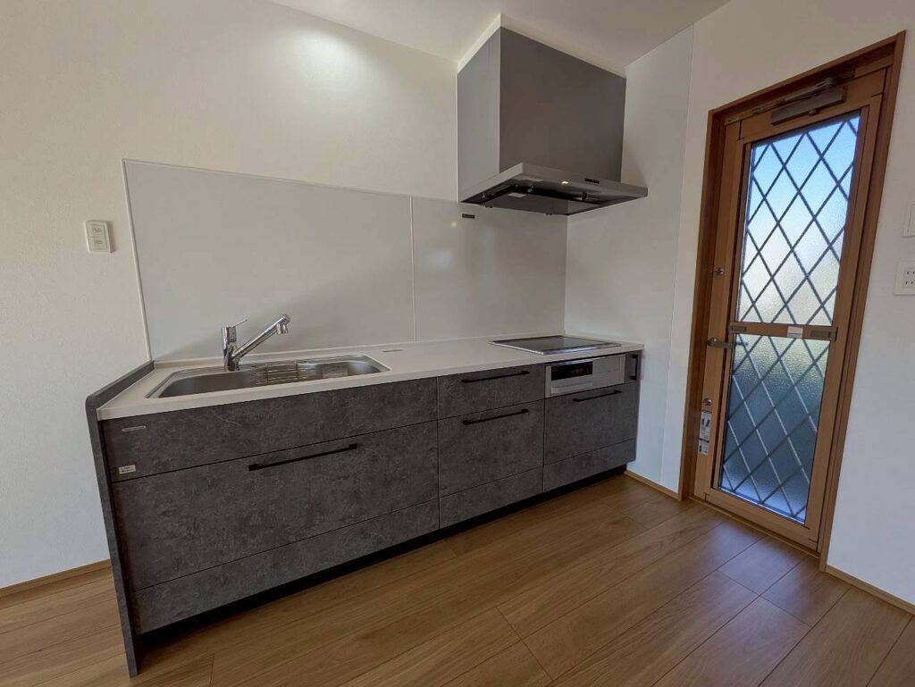 マットな質感の面材が空間を引き締めるキッチン。