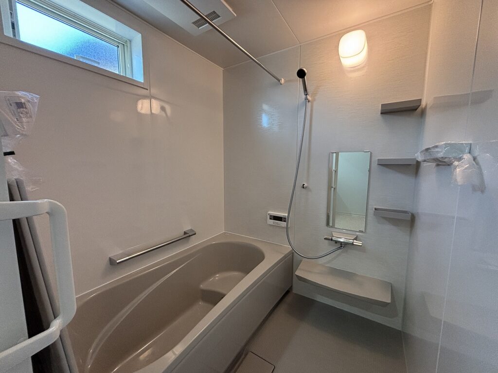 落ち着いたトーンでまとめられた清潔感あふれるバスルーム