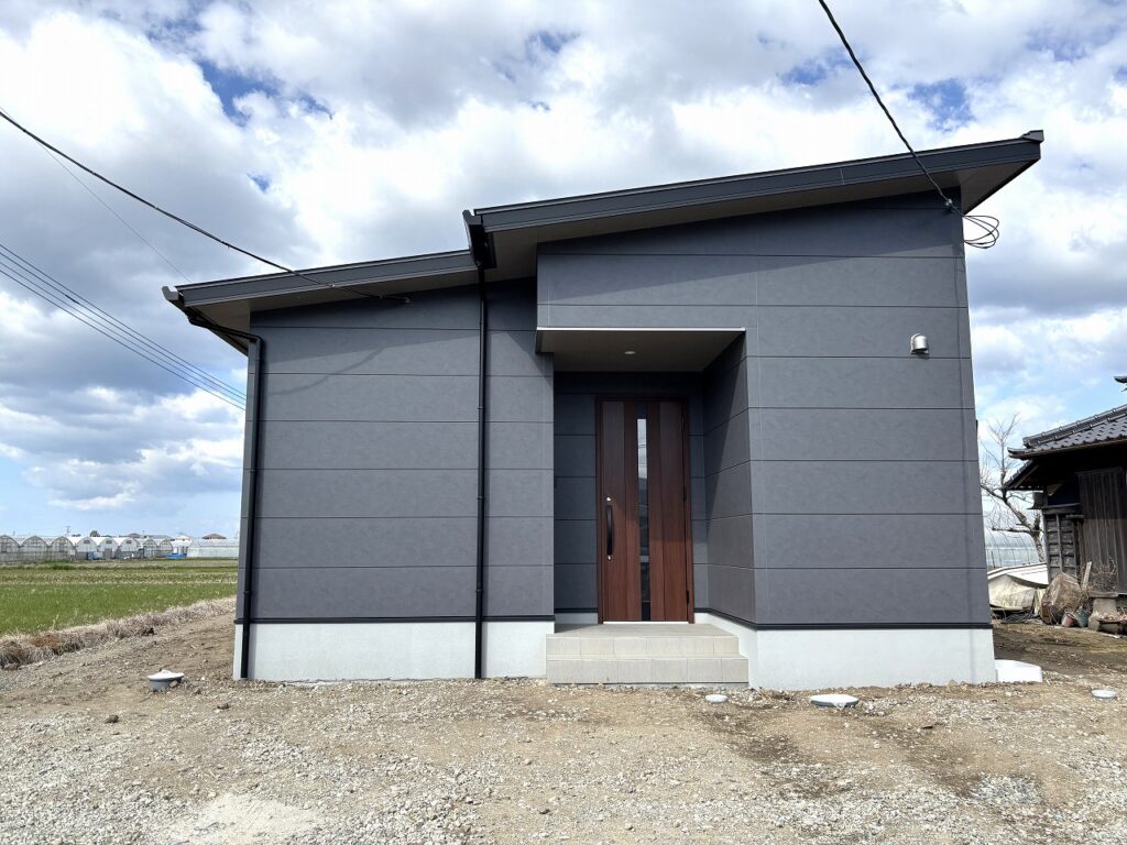 グレー×木目のスタイリッシュモダンな平屋