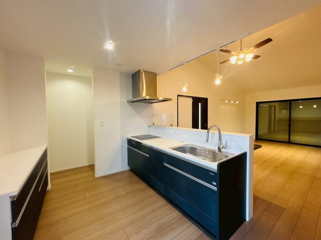 LDKの中心となる対面キッチンは、開放感と使いやすさを両立。