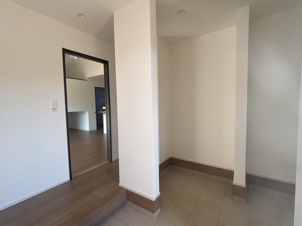 収納スペースには靴やアウトドア用品をすっきり収納でき、コートもその場で掛けられます。